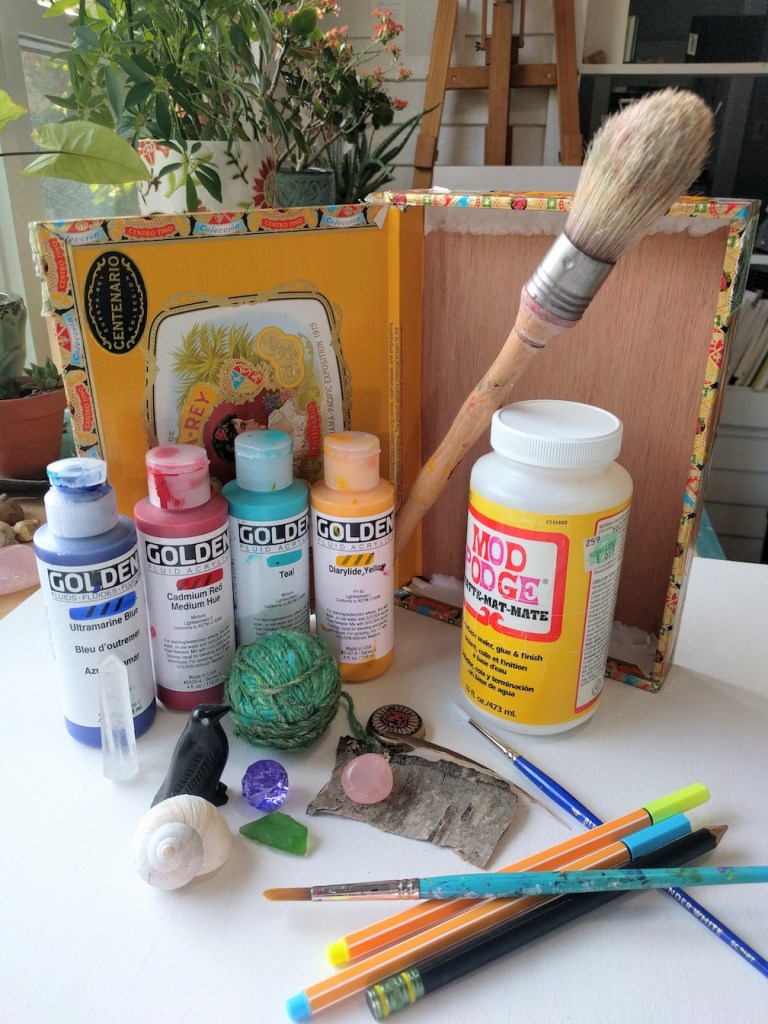 Come and create a personal Portal to your Sacred Heart. We will be doing some visioning and writing first to awaken our imagination and set our intentions for creation. Then it’s playtime, transforming cigar boxes into sacred spaces with paint, paper, collage and other fun materials!